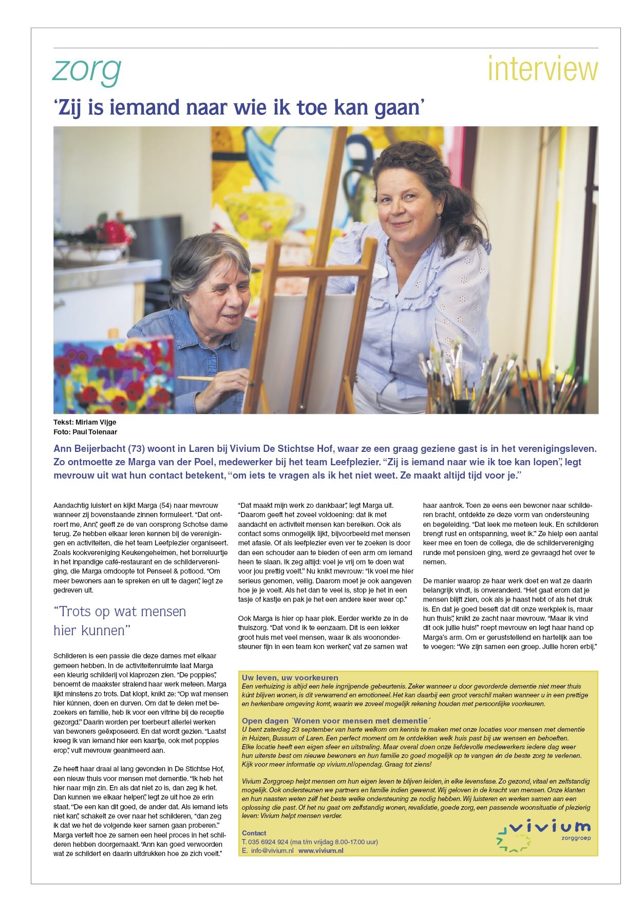 Het Vivium ZorgNieuws verschijnt 2x per jaar in regionale huis-aan-huis kranten van regio Gooi en Vechtstreek.