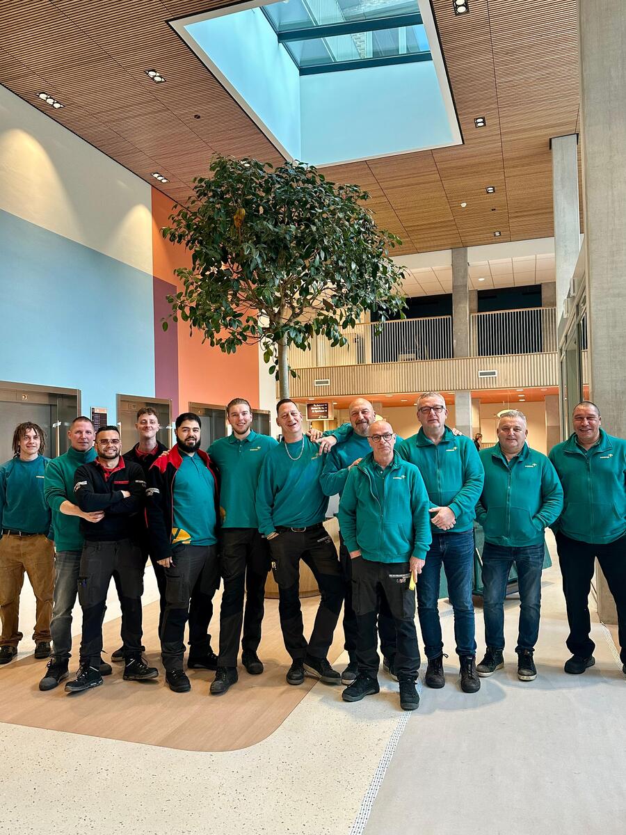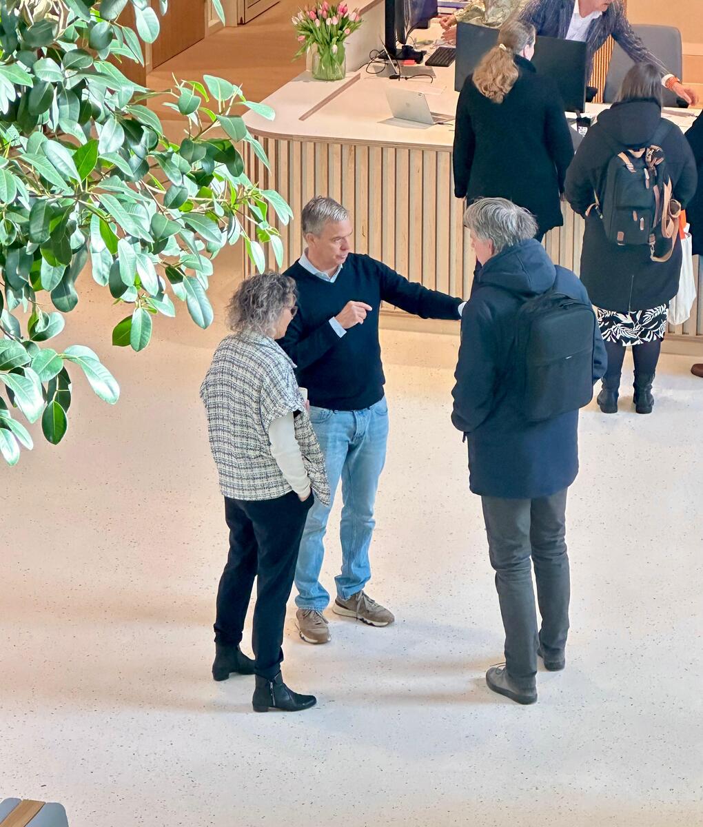 Vanaf vandaag beginnen de kantoorfuncties in Naarderheem! Folkert (directeur bedrijfsvoering) en Ingrid (concernadviseur P&O) verwelkomen het personeel bij de hoofdingang. Op de eerste verdieping staat directeur Marco.