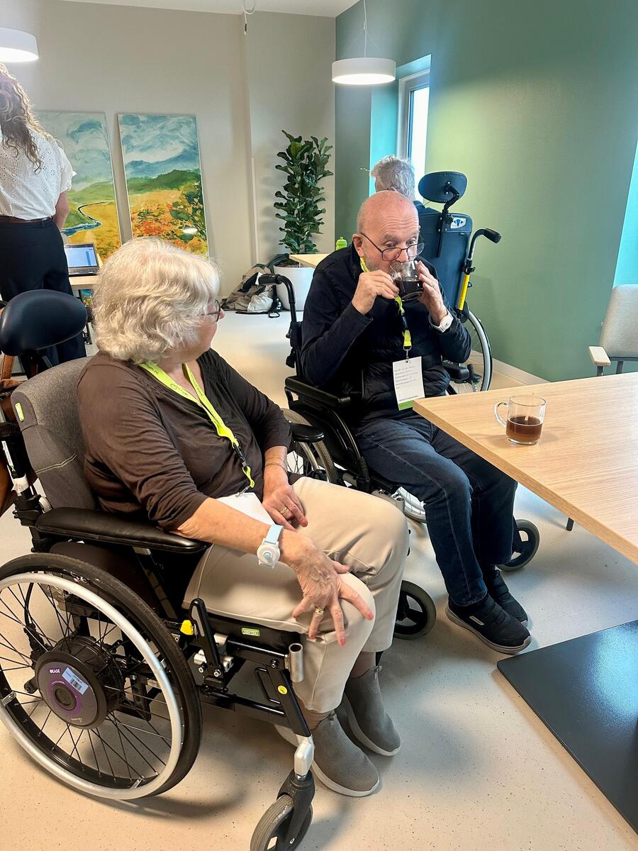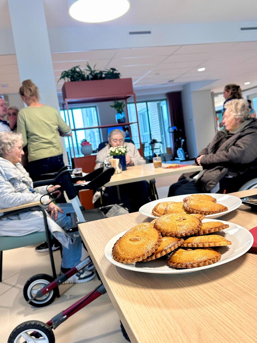 De cliënten worden in het trefpunt op de afdeling opgevangen met wat te drinken en wat lekkers. Ook krijgen ze daar nieuwe hals- of polsalarmen.