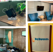 Op de eerste verdieping bij de pleinen vindt u twee ruimtes met de naam ‘De Bubbel’. De Bubbels zijn twee prikkelarme ruimtes waar bewoners even tot rust kunnen komen, waar u samen met uw naaste een muziekje kunt luisteren en waar een bewoner bijvoorbeeld ook een handmassage kan krijgen.