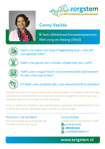 Mijn naam is Conny Vasilda, cliëntenvertrouwenspersoon Wet zorg en dwang bij stichting Zorgstem. U kunt mij telefonisch: 06 36494895 of via de mail : c.vasilda@zorgstem.nl bereiken. Daarnaast zal ik af en toe aanwezig zijn op de locaties van Vivium. Ook dan kunt u bij mij terecht.